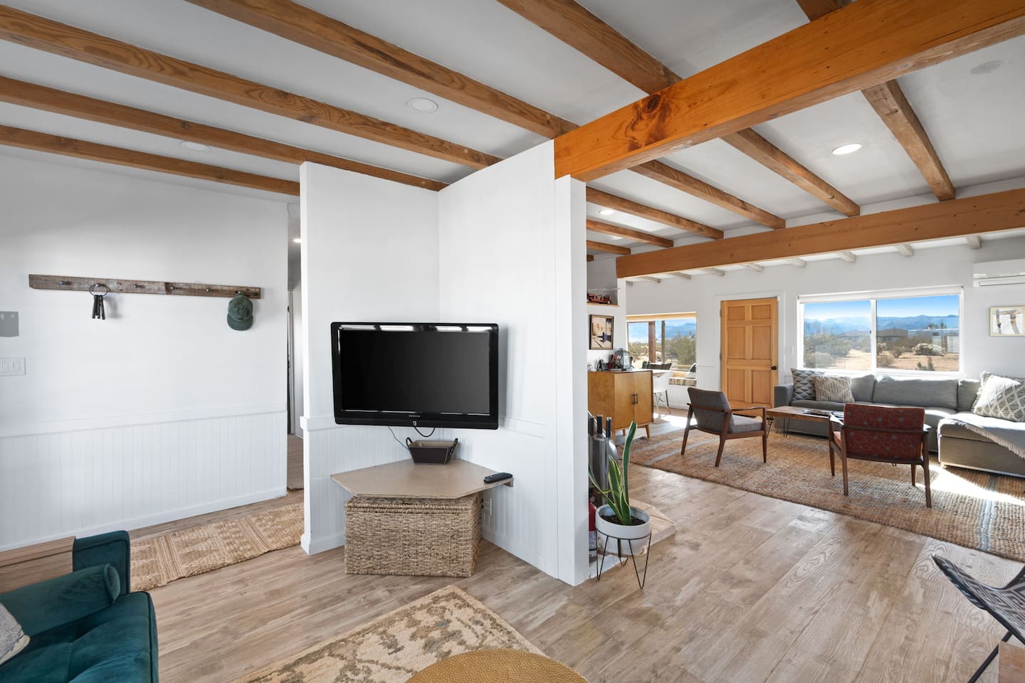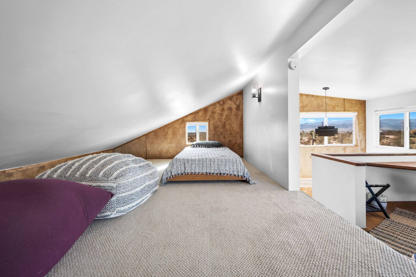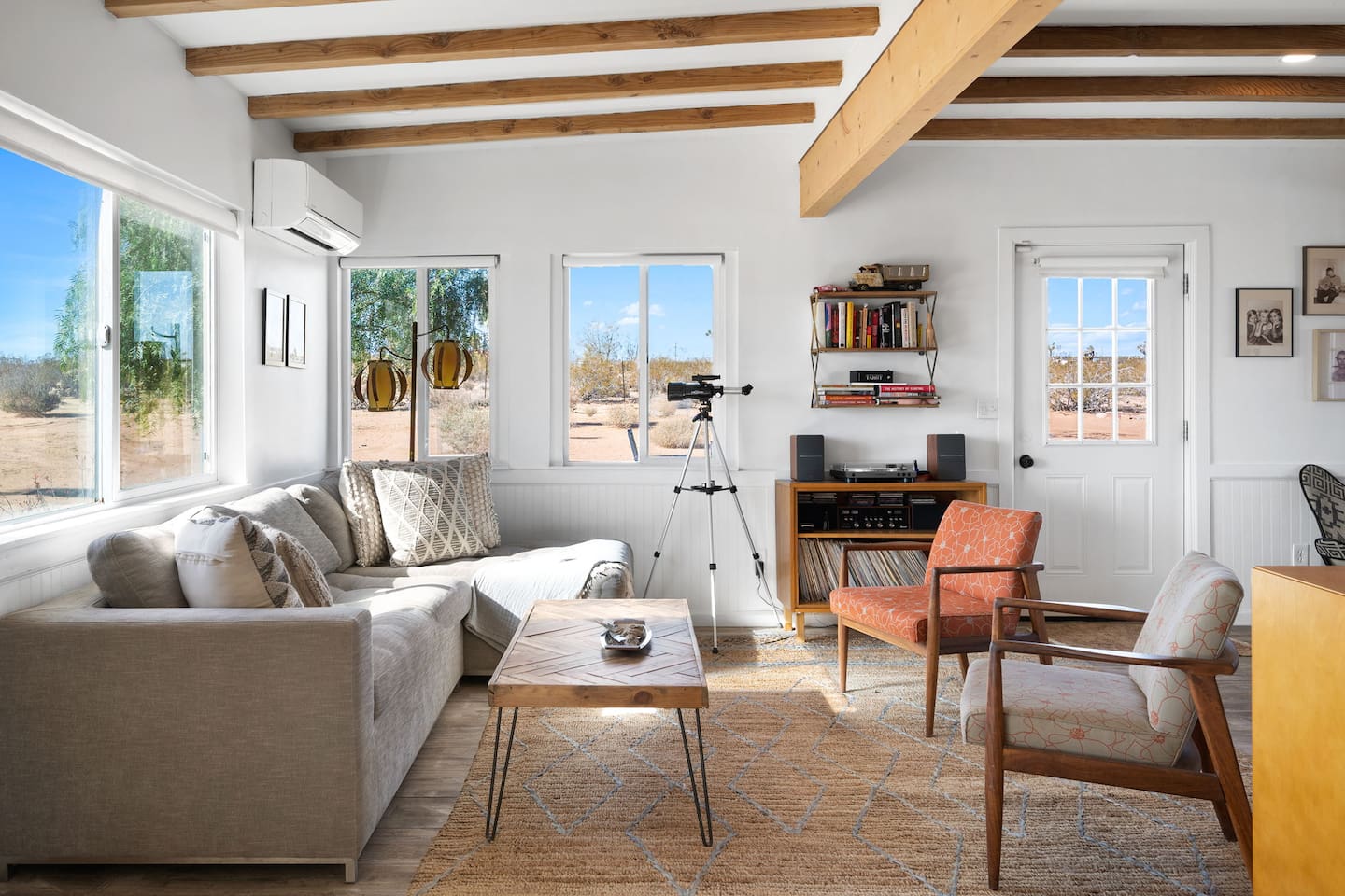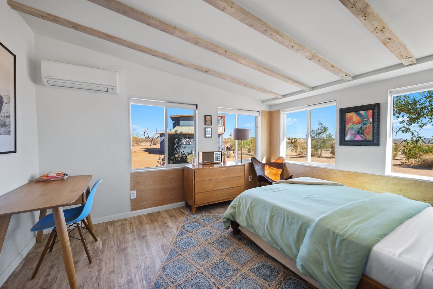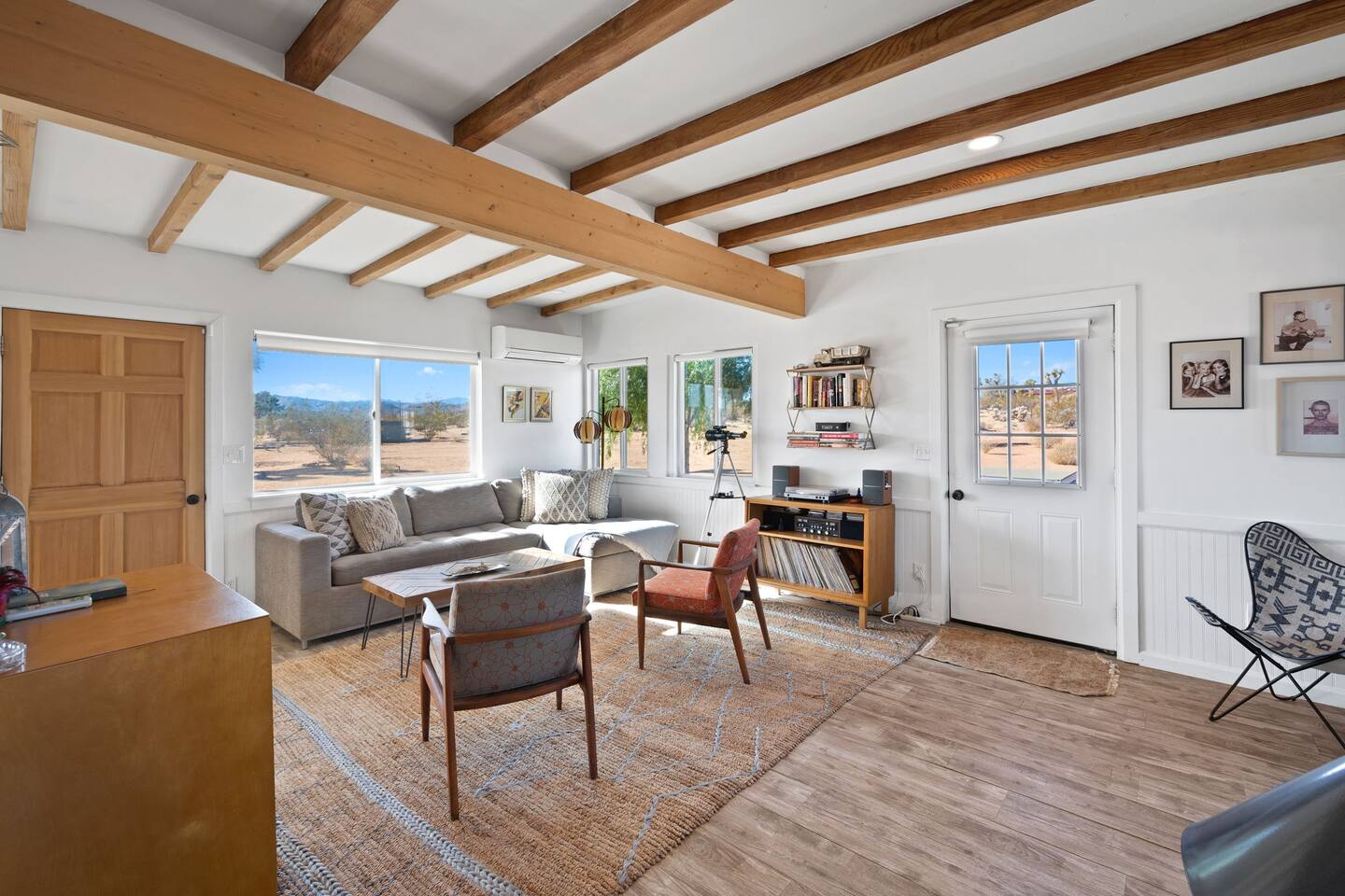 Inside, both homes feature fully equipped kitchens stocked with everything you need to cook up a delicious meal. Whether you prefer the ease of a Keurig or the tradition of a drip coffee maker, we’ve got you covered. Each kitchen also includes complimentary coffee and tea, cooking and baking basics, a toaster, microwave, and a gas range with oven—making meal prep simple and stress-free. Each house features two bedrooms and one bathroom, stocked with plush bedding, linens, towels, and toiletries for a comfortable stay. Main House: Bedroom 1 – Queen bed with a trundle single bed (for kids) Bedroom 2 – Queen bed with a trundle single bed (for kids) + a pack 'n play Living Room – Queen-size sleeper sofa & one queen air mattress Casita: Bedroom 1 – Queen bed Bedroom 2 – Queen bed with two single floor mattresses Living Room – Queen-size sleeper sofa & one queen air mattress Unwind under the stars in the hot tub or gather around the warmth of two gas firepits. Fire up the two outdoor grills to prepare a delicious feast, then enjoy your meal at the outdoor dining table or relax in the cozy lounge area. For entertainment, enjoy a classic evening by the wood firepit, challenge friends to a game of foosball or cornhole, or choose from a selection of board games for some friendly competition. With ample outdoor space to relax and connect, this Airbnb offers the perfect setting to unwind, socialize, and experience the beauty of Joshua Tree. Book your stay today and create unforgettable memories in this desert oasis!Inside, both homes feature fully equipped kitchens stocked with everything you need to cook up a delicious meal. Whether you prefer the ease of a Keurig or the tradition of a drip coffee maker, we’ve got you covered. Each kitchen also includes complimentary coffee and tea, cooking and baking basics, a toaster, microwave, and a gas range with oven—making meal prep simple and stress-free. Each house features two bedrooms and one bathroom, stocked with plush bedding, linens, towels, and toiletries for a comfortable stay. Main House: Bedroom 1 – Queen bed with a trundle single bed (for kids) Bedroom 2 – Queen bed with a trundle single bed (for kids) + a pack 'n play Living Room – Queen-size sleeper sofa & one queen air mattress Casita: Bedroom 1 – Queen bed Bedroom 2 – Queen bed with two single floor mattresses Living Room – Queen-size sleeper sofa & one queen air mattress Unwind under the stars in the hot tub or gather around the warmth of two gas firepits. Fire up the two outdoor grills to prepare a delicious feast, then enjoy your meal at the outdoor dining table or relax in the cozy lounge area. For entertainment, enjoy a classic evening by the wood firepit, challenge friends to a game of foosball or cornhole, or choose from a selection of board games for some friendly competition. With ample outdoor space to relax and connect, this Airbnb offers the perfect setting to unwind, socialize, and experience the beauty of Joshua Tree. Book your stay today and create unforgettable memories in this desert oasis!