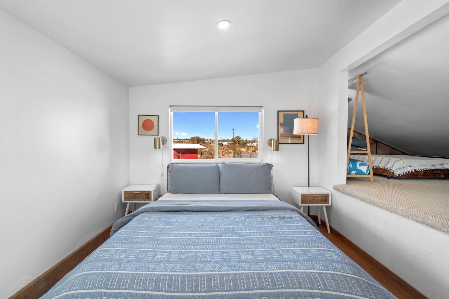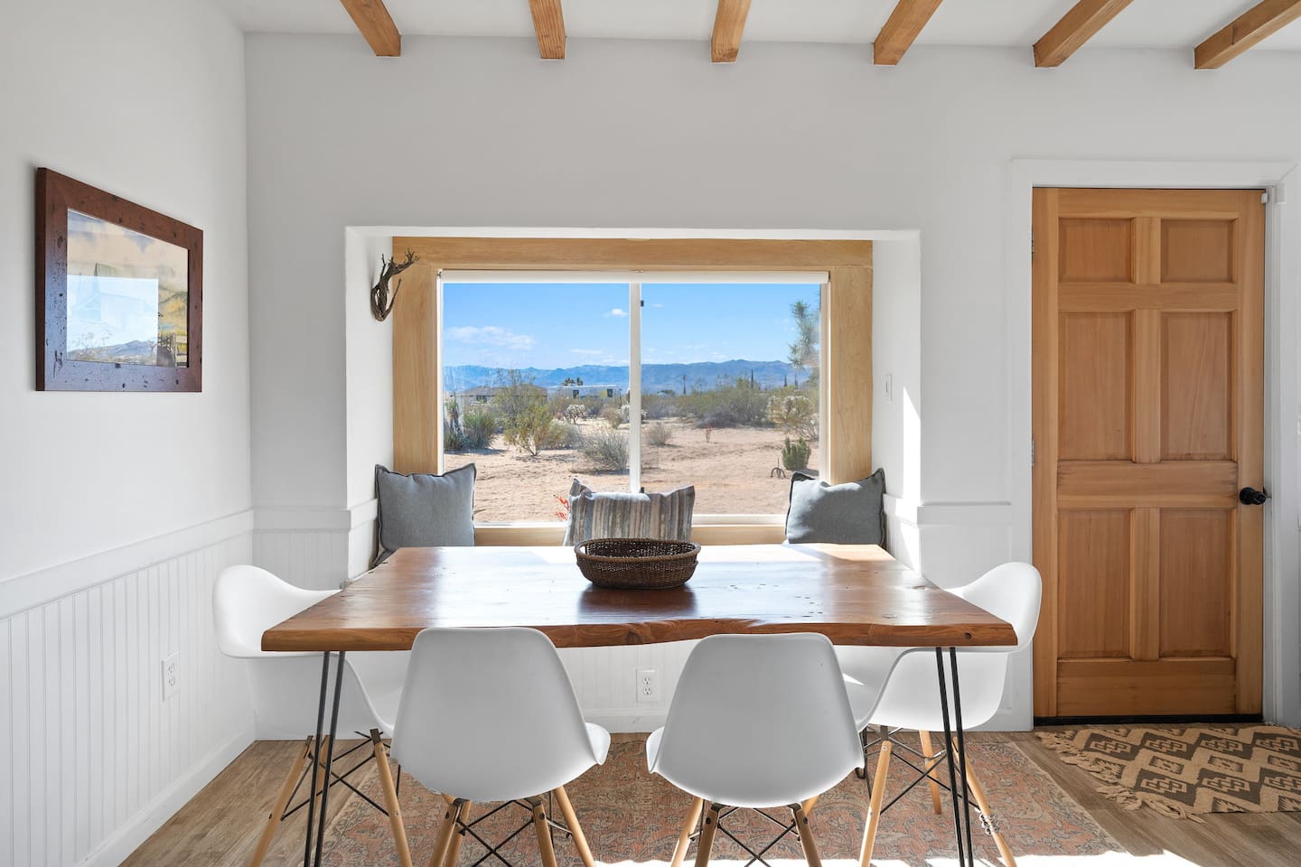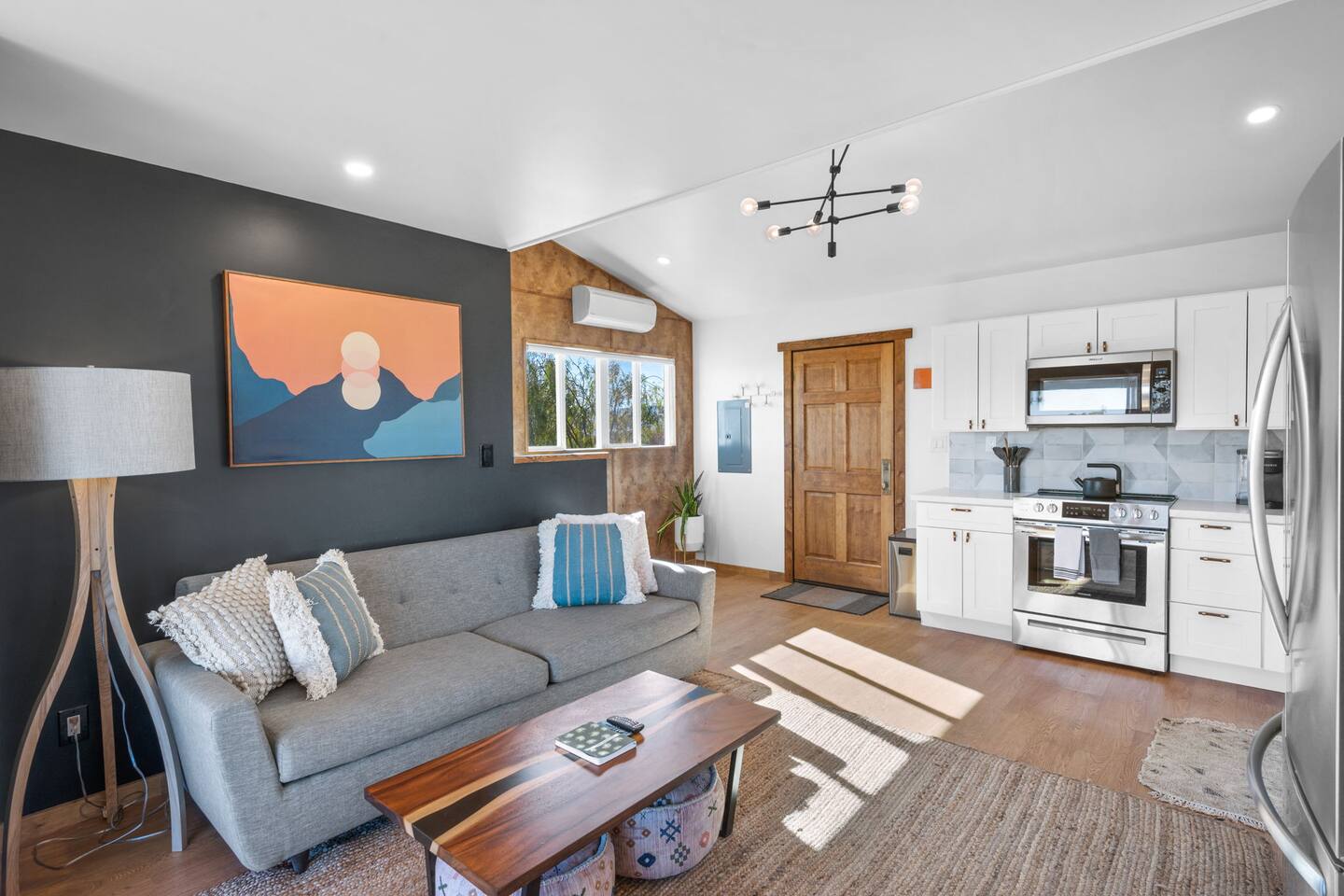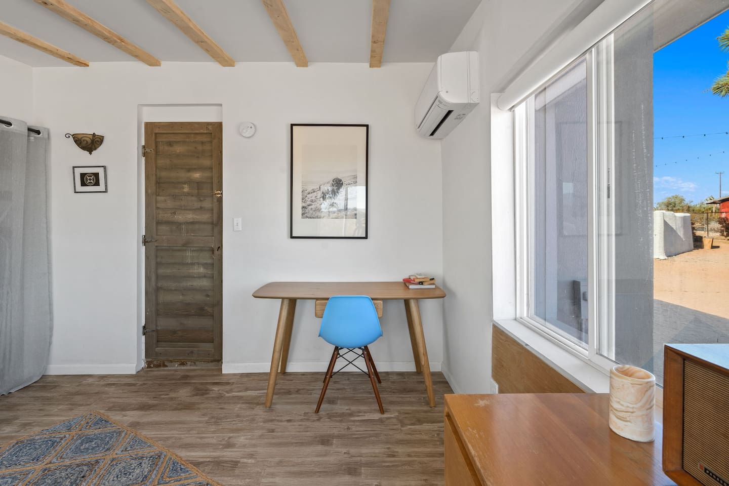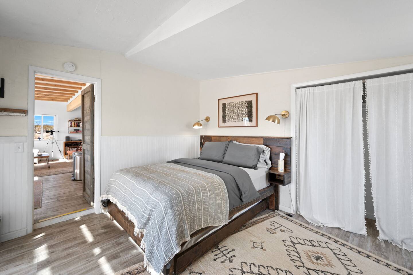 Inside, both homes feature fully equipped kitchens stocked with everything you need to cook up a delicious meal. Whether you prefer the ease of a Keurig or the tradition of a drip coffee maker, we’ve got you covered. Each kitchen also includes complimentary coffee and tea, cooking and baking basics, a toaster, microwave, and a gas range with oven—making meal prep simple and stress-free. Each house features two bedrooms and one bathroom, stocked with plush bedding, linens, towels, and toiletries for a comfortable stay. Main House: Bedroom 1 – Queen bed with a trundle single bed (for kids) Bedroom 2 – Queen bed with a trundle single bed (for kids) + a pack 'n play Living Room – Queen-size sleeper sofa & one queen air mattress Casita: Bedroom 1 – Queen bed Bedroom 2 – Queen bed with two single floor mattresses Living Room – Queen-size sleeper sofa & one queen air mattress Unwind under the stars in the hot tub or gather around the warmth of two gas firepits. Fire up the two outdoor grills to prepare a delicious feast, then enjoy your meal at the outdoor dining table or relax in the cozy lounge area. For entertainment, enjoy a classic evening by the wood firepit, challenge friends to a game of foosball or cornhole, or choose from a selection of board games for some friendly competition. With ample outdoor space to relax and connect, this Airbnb offers the perfect setting to unwind, socialize, and experience the beauty of Joshua Tree. Book your stay today and create unforgettable memories in this desert oasis!Inside, both homes feature fully equipped kitchens stocked with everything you need to cook up a delicious meal. Whether you prefer the ease of a Keurig or the tradition of a drip coffee maker, we’ve got you covered. Each kitchen also includes complimentary coffee and tea, cooking and baking basics, a toaster, microwave, and a gas range with oven—making meal prep simple and stress-free. Each house features two bedrooms and one bathroom, stocked with plush bedding, linens, towels, and toiletries for a comfortable stay. Main House: Bedroom 1 – Queen bed with a trundle single bed (for kids) Bedroom 2 – Queen bed with a trundle single bed (for kids) + a pack 'n play Living Room – Queen-size sleeper sofa & one queen air mattress Casita: Bedroom 1 – Queen bed Bedroom 2 – Queen bed with two single floor mattresses Living Room – Queen-size sleeper sofa & one queen air mattress Unwind under the stars in the hot tub or gather around the warmth of two gas firepits. Fire up the two outdoor grills to prepare a delicious feast, then enjoy your meal at the outdoor dining table or relax in the cozy lounge area. For entertainment, enjoy a classic evening by the wood firepit, challenge friends to a game of foosball or cornhole, or choose from a selection of board games for some friendly competition. With ample outdoor space to relax and connect, this Airbnb offers the perfect setting to unwind, socialize, and experience the beauty of Joshua Tree. Book your stay today and create unforgettable memories in this desert oasis!