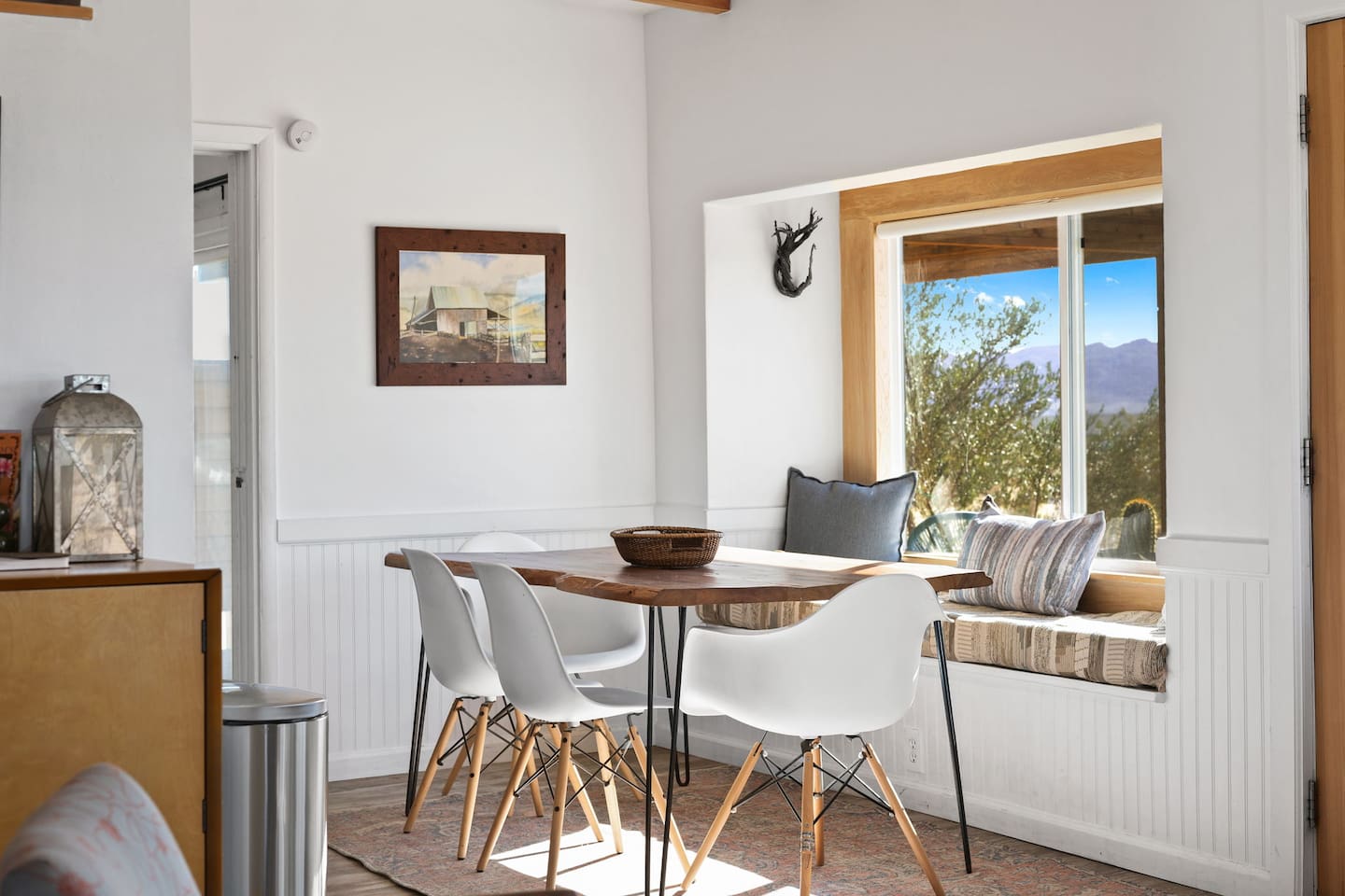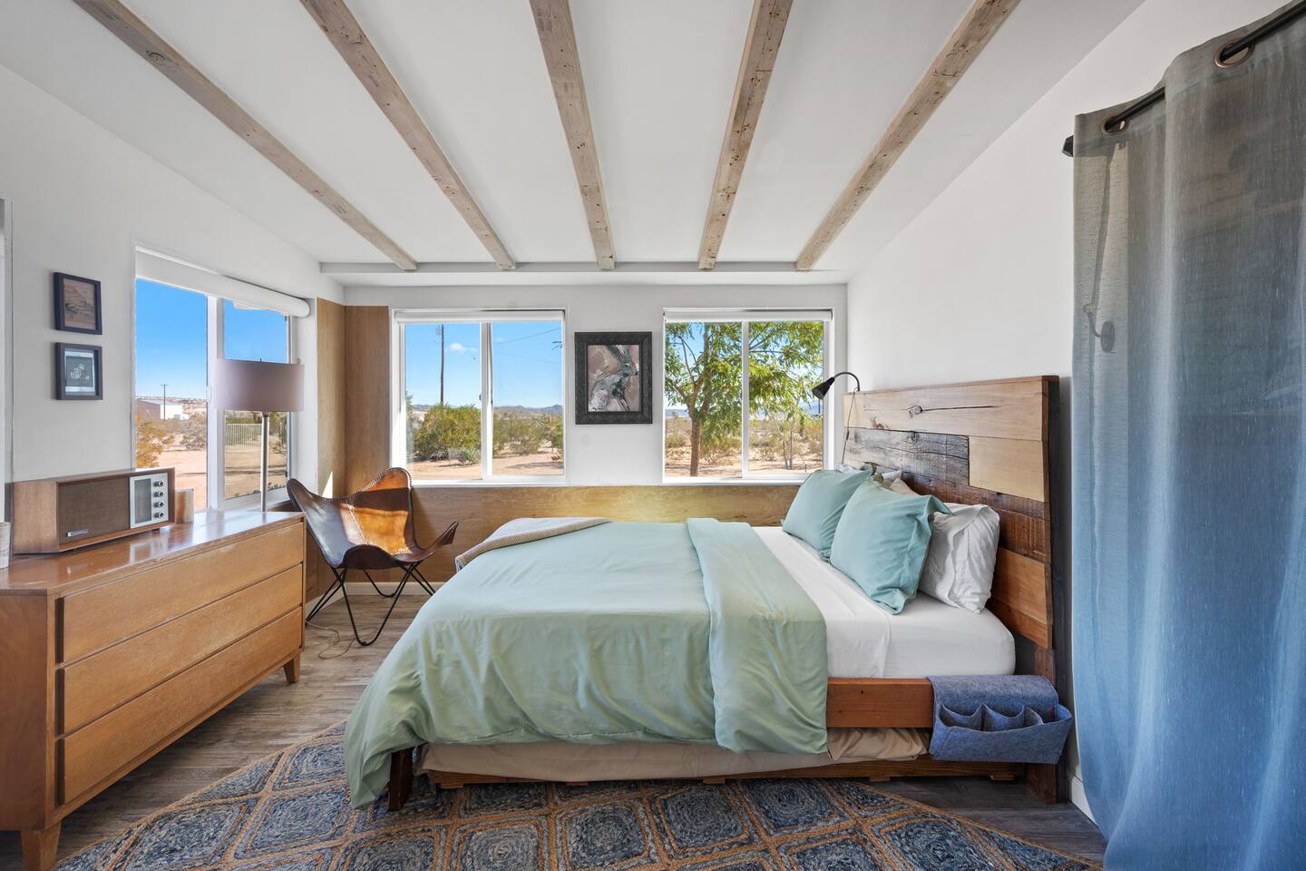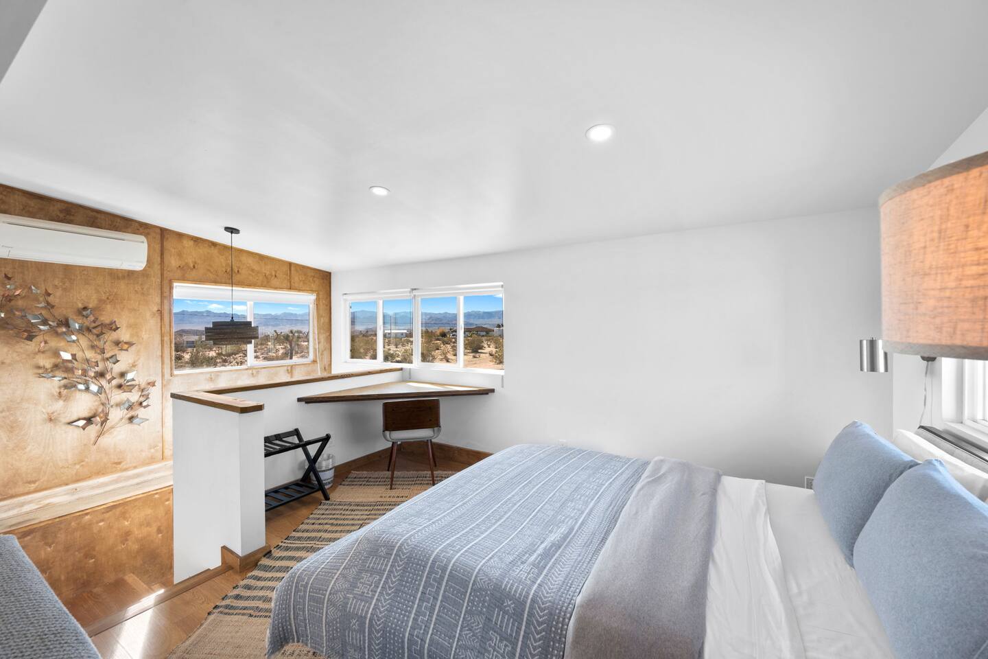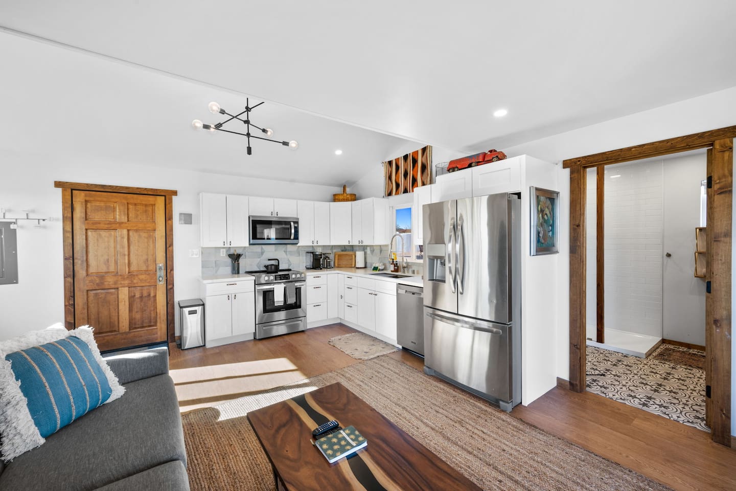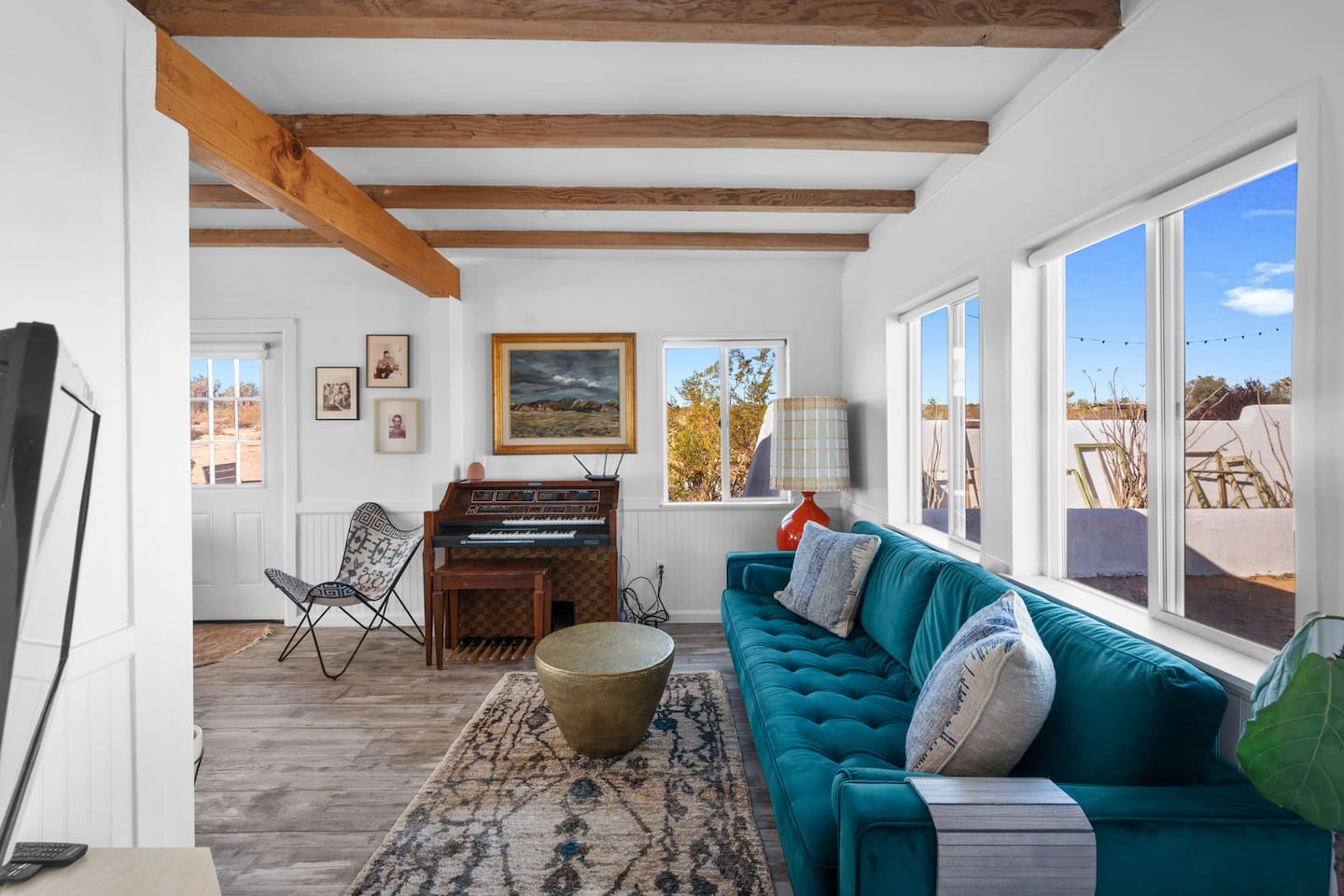 Inside, both homes feature fully equipped kitchens stocked with everything you need to cook up a delicious meal. Whether you prefer the ease of a Keurig or the tradition of a drip coffee maker, we’ve got you covered. Each kitchen also includes complimentary coffee and tea, cooking and baking basics, a toaster, microwave, and a gas range with oven—making meal prep simple and stress-free. Each house features two bedrooms and one bathroom, stocked with plush bedding, linens, towels, and toiletries for a comfortable stay. Main House: Bedroom 1 – Queen bed with a trundle single bed (for kids) Bedroom 2 – Queen bed with a trundle single bed (for kids) + a pack 'n play Living Room – Queen-size sleeper sofa & one queen air mattress Casita: Bedroom 1 – Queen bed Bedroom 2 – Queen bed with two single floor mattresses Living Room – Queen-size sleeper sofa & one queen air mattress Unwind under the stars in the hot tub or gather around the warmth of two gas firepits. Fire up the two outdoor grills to prepare a delicious feast, then enjoy your meal at the outdoor dining table or relax in the cozy lounge area. For entertainment, enjoy a classic evening by the wood firepit, challenge friends to a game of foosball or cornhole, or choose from a selection of board games for some friendly competition. With ample outdoor space to relax and connect, this Airbnb offers the perfect setting to unwind, socialize, and experience the beauty of Joshua Tree. Book your stay today and create unforgettable memories in this desert oasis!Inside, both homes feature fully equipped kitchens stocked with everything you need to cook up a delicious meal. Whether you prefer the ease of a Keurig or the tradition of a drip coffee maker, we’ve got you covered. Each kitchen also includes complimentary coffee and tea, cooking and baking basics, a toaster, microwave, and a gas range with oven—making meal prep simple and stress-free. Each house features two bedrooms and one bathroom, stocked with plush bedding, linens, towels, and toiletries for a comfortable stay. Main House: Bedroom 1 – Queen bed with a trundle single bed (for kids) Bedroom 2 – Queen bed with a trundle single bed (for kids) + a pack 'n play Living Room – Queen-size sleeper sofa & one queen air mattress Casita: Bedroom 1 – Queen bed Bedroom 2 – Queen bed with two single floor mattresses Living Room – Queen-size sleeper sofa & one queen air mattress Unwind under the stars in the hot tub or gather around the warmth of two gas firepits. Fire up the two outdoor grills to prepare a delicious feast, then enjoy your meal at the outdoor dining table or relax in the cozy lounge area. For entertainment, enjoy a classic evening by the wood firepit, challenge friends to a game of foosball or cornhole, or choose from a selection of board games for some friendly competition. With ample outdoor space to relax and connect, this Airbnb offers the perfect setting to unwind, socialize, and experience the beauty of Joshua Tree. Book your stay today and create unforgettable memories in this desert oasis!