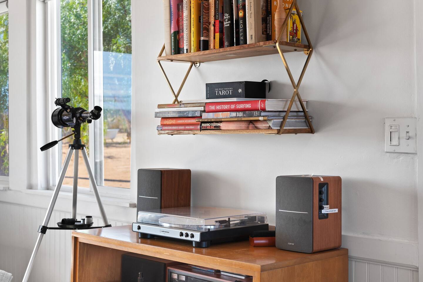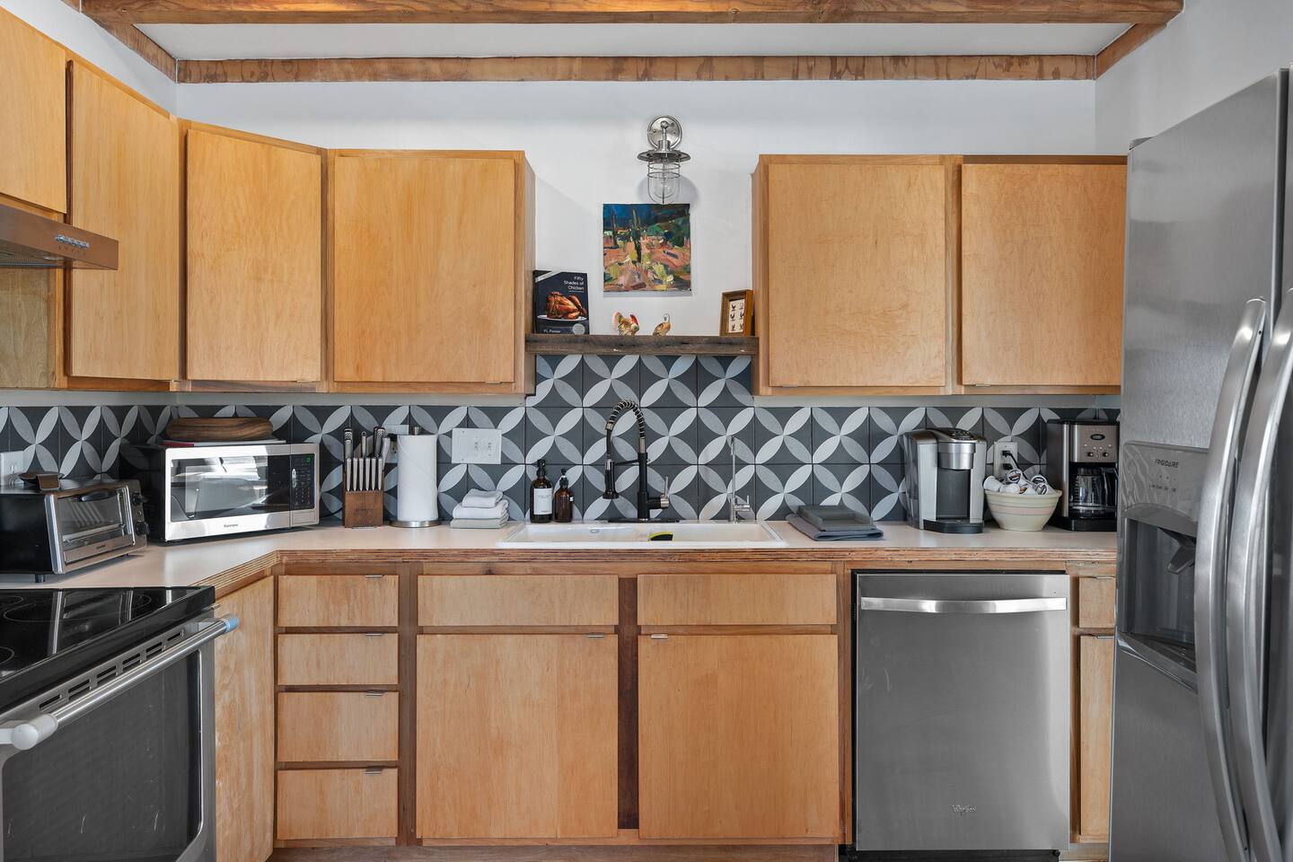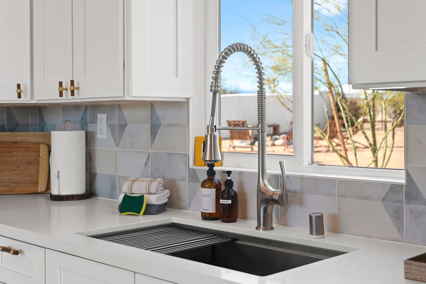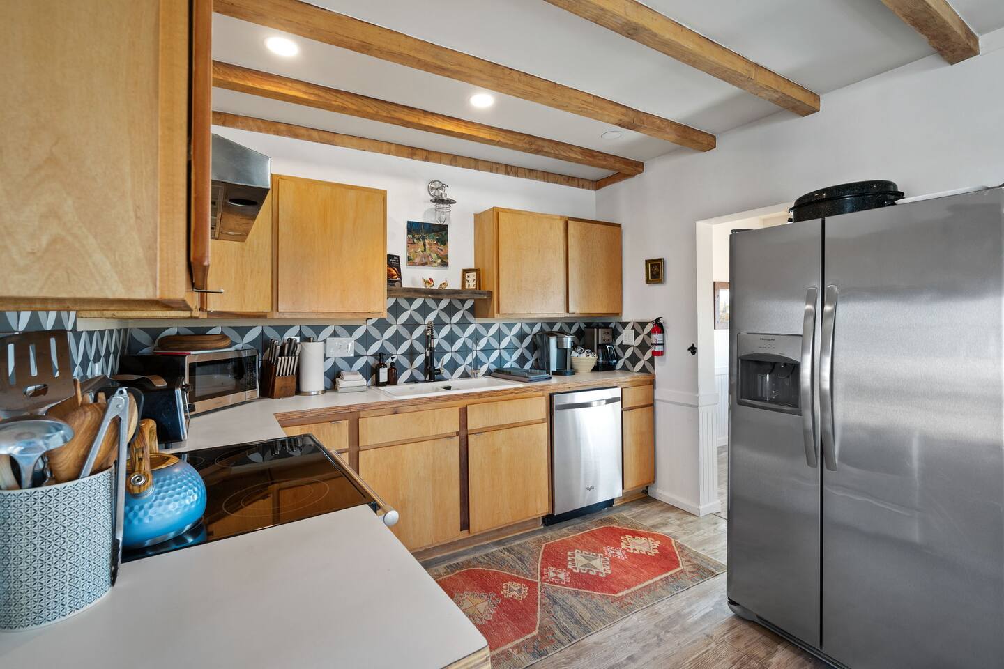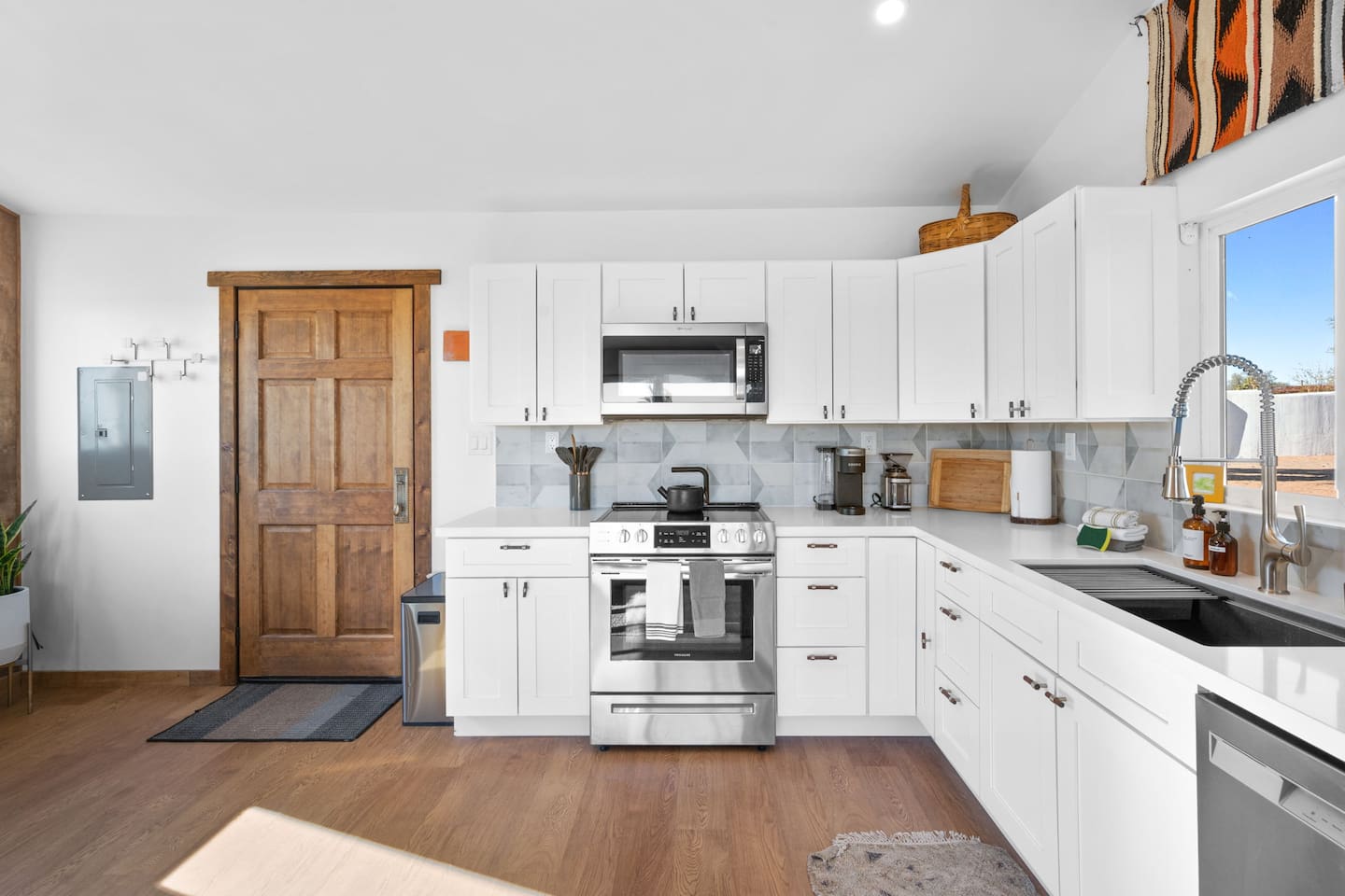 Inside, both homes feature fully equipped kitchens stocked with everything you need to cook up a delicious meal. Whether you prefer the ease of a Keurig or the tradition of a drip coffee maker, we’ve got you covered. Each kitchen also includes complimentary coffee and tea, cooking and baking basics, a toaster, microwave, and a gas range with oven—making meal prep simple and stress-free. Each house features two bedrooms and one bathroom, stocked with plush bedding, linens, towels, and toiletries for a comfortable stay. Main House: Bedroom 1 – Queen bed with a trundle single bed (for kids) Bedroom 2 – Queen bed with a trundle single bed (for kids) + a pack 'n play Living Room – Queen-size sleeper sofa & one queen air mattress Casita: Bedroom 1 – Queen bed Bedroom 2 – Queen bed with two single floor mattresses Living Room – Queen-size sleeper sofa & one queen air mattress Unwind under the stars in the hot tub or gather around the warmth of two gas firepits. Fire up the two outdoor grills to prepare a delicious feast, then enjoy your meal at the outdoor dining table or relax in the cozy lounge area. For entertainment, enjoy a classic evening by the wood firepit, challenge friends to a game of foosball or cornhole, or choose from a selection of board games for some friendly competition. With ample outdoor space to relax and connect, this Airbnb offers the perfect setting to unwind, socialize, and experience the beauty of Joshua Tree. Book your stay today and create unforgettable memories in this desert oasis!Inside, both homes feature fully equipped kitchens stocked with everything you need to cook up a delicious meal. Whether you prefer the ease of a Keurig or the tradition of a drip coffee maker, we’ve got you covered. Each kitchen also includes complimentary coffee and tea, cooking and baking basics, a toaster, microwave, and a gas range with oven—making meal prep simple and stress-free. Each house features two bedrooms and one bathroom, stocked with plush bedding, linens, towels, and toiletries for a comfortable stay. Main House: Bedroom 1 – Queen bed with a trundle single bed (for kids) Bedroom 2 – Queen bed with a trundle single bed (for kids) + a pack 'n play Living Room – Queen-size sleeper sofa & one queen air mattress Casita: Bedroom 1 – Queen bed Bedroom 2 – Queen bed with two single floor mattresses Living Room – Queen-size sleeper sofa & one queen air mattress Unwind under the stars in the hot tub or gather around the warmth of two gas firepits. Fire up the two outdoor grills to prepare a delicious feast, then enjoy your meal at the outdoor dining table or relax in the cozy lounge area. For entertainment, enjoy a classic evening by the wood firepit, challenge friends to a game of foosball or cornhole, or choose from a selection of board games for some friendly competition. With ample outdoor space to relax and connect, this Airbnb offers the perfect setting to unwind, socialize, and experience the beauty of Joshua Tree. Book your stay today and create unforgettable memories in this desert oasis!