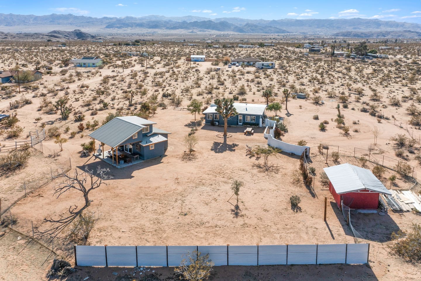 Leave your worries behind and unwind at this dream getaway in the heart of Joshua Tree. This unique property features two separate homes, ideal for families, groups of friends, or couples seeking a relaxing retreat with room to spread out and connect ✓ 2 homes in 2.5 acres ✓ 2 kitchens ✓ 2 firepits ✓ Hot tub ✓ Foosball table, board games ✓ Outdoor games and lots of entertainment ✓ 2 gas grills and a smoker ✓ Outdoor shower ✓ Desert views and stargazing ✓ Outdoor dining and lounge area