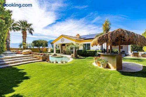 Experience the desert & enjoy the views of San Jacinto mountain. Our vacation home has everything you need to rest and have fun with family and friends. ✓ San Jacinto mountain & desert views ✓ Heated pool & spa (Fee apply) ✓ Mini golf ✓ Tiki bar ✓ Outdoor dining area ✓ Firepit & lounge area ✓ Bbq Grill ✓ Built-in indoor/outdoor sound system ✓ Fully equipped kitchen ✓ All rooms feature TVs with Hulu and Disney+ ✓ 20 min to Palm Springs downtown, Cabazon, and casinos ✓ 30 min to Joshua Tree